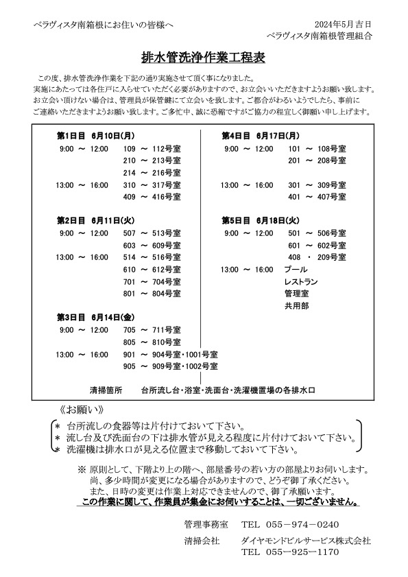 排水管清掃のお知らせ