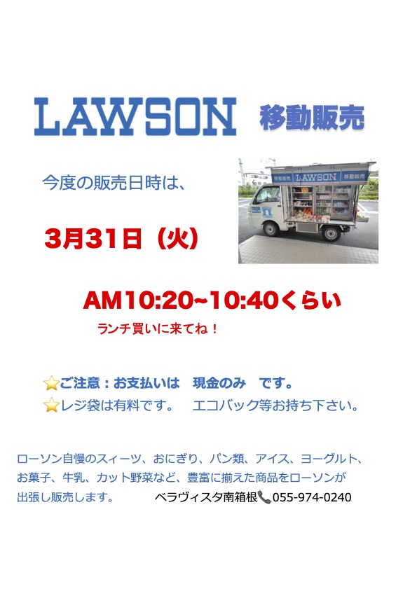 移動販売は3月までとなりました。これが最後の移動販売となります。