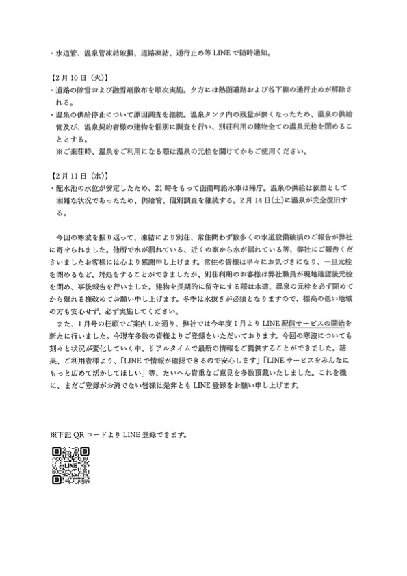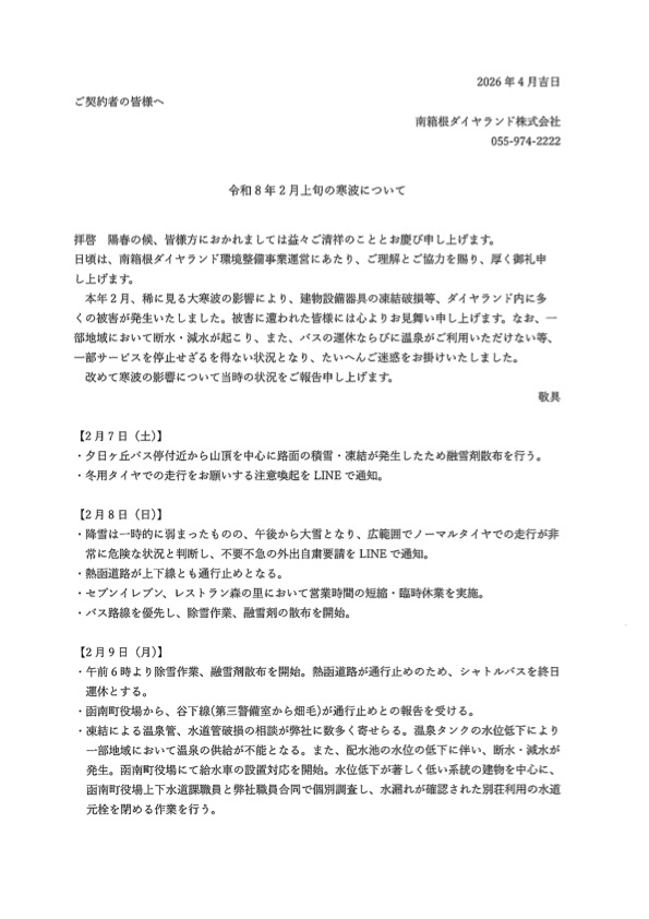 4. ダイヤランドからの今年2月上旬の寒波についてのお知らせと、ダイヤランドサービスセンターのLINEサービス